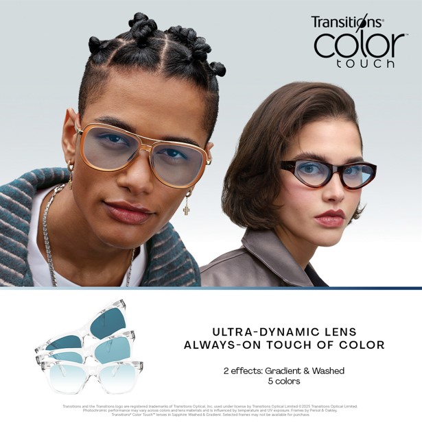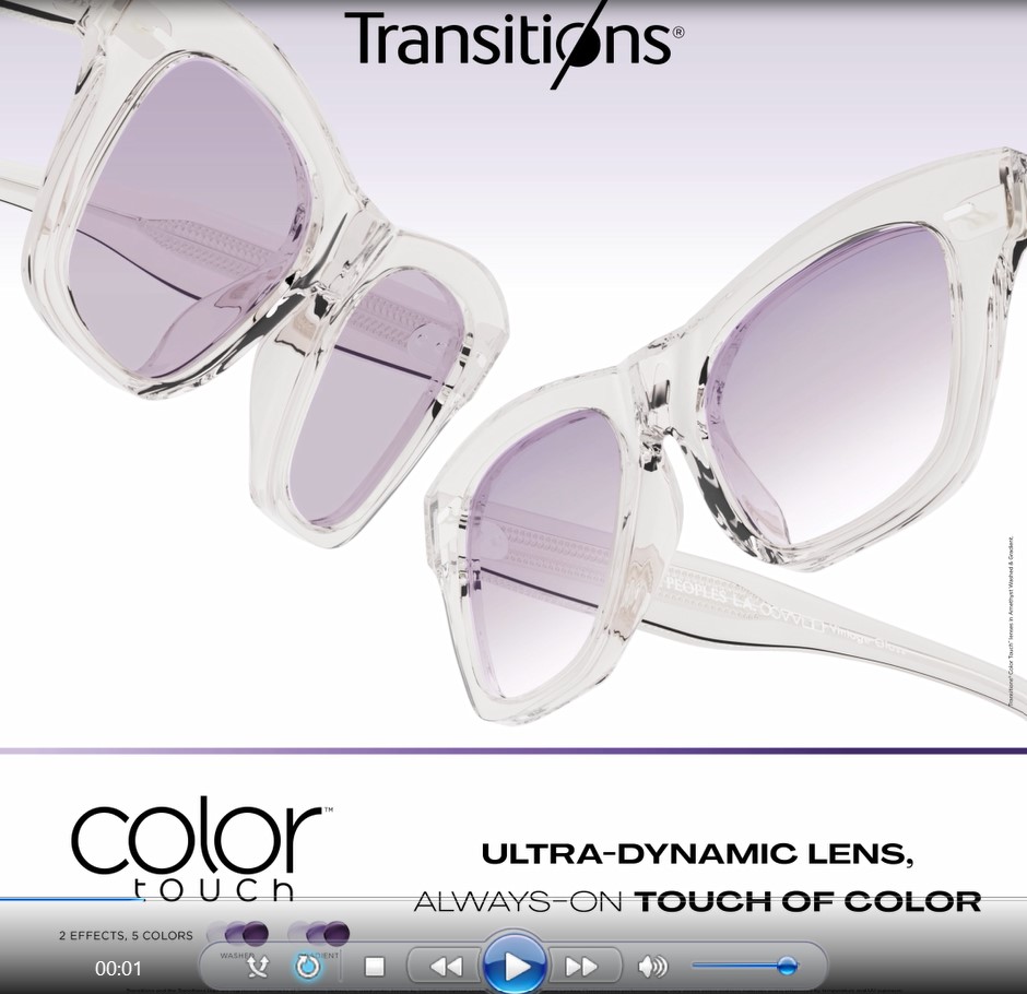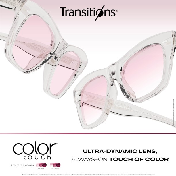 Transitions® Color Touch™ is the lens that adds style to everyday life, while protecting the eyes with chic and modern flair.