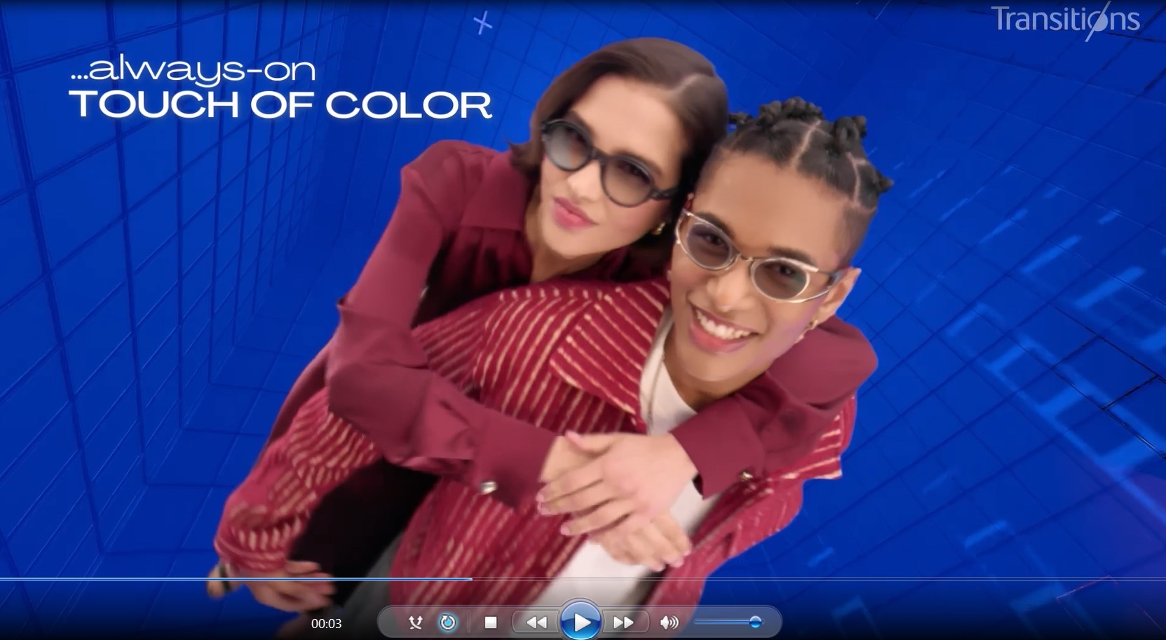 Use these static images featuring two young talents to let your patients know that you offer Transitions® Color Touch™ lenses. Inspiring!