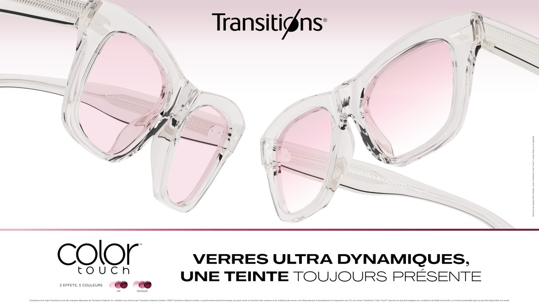 Transitions® Color Touch™ est le verre qui donne du style au quotidien, tout en protégeant les yeux avec chic et modernité.
